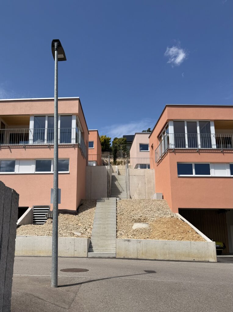 Das Wohnhausensemble in der Schweizer Stadt Zwingen ist ein Beispiel für modernes und zugleich behagliches Wohnen. Das Projekt verbindet zeitlose Architektur mit einem hohen Anspruch an die Qualität des Wohnumfelds und eine natürliche Einbindung in die bestehende Bebauung.